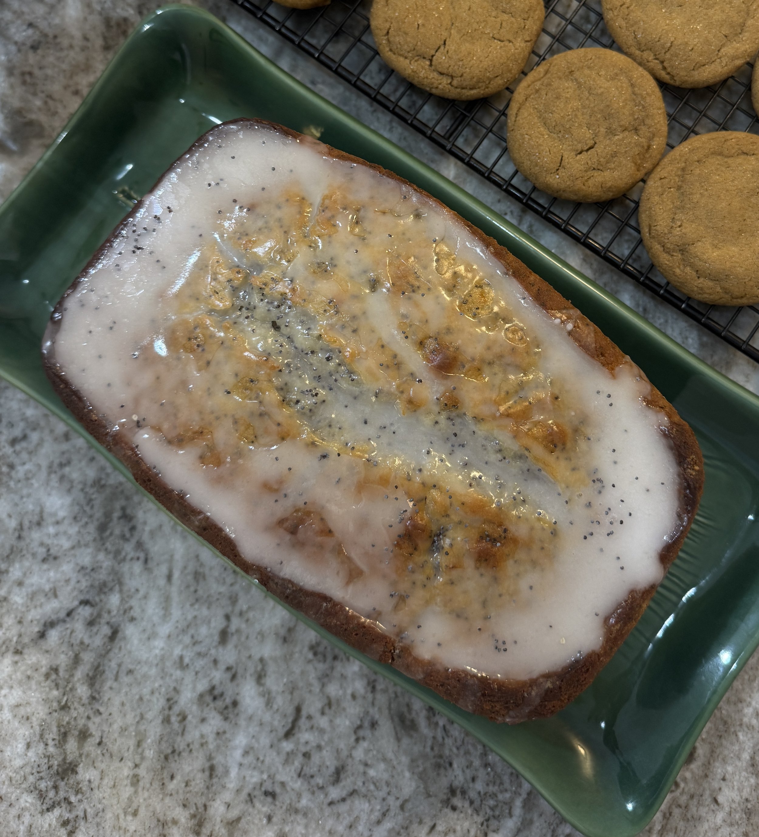Once the banana bread is completely cool, mix the powdered sugar and lemon juice together until it is a thick but pourable consistency. Pour it over the banana bread then add a little lemon zest for color.
