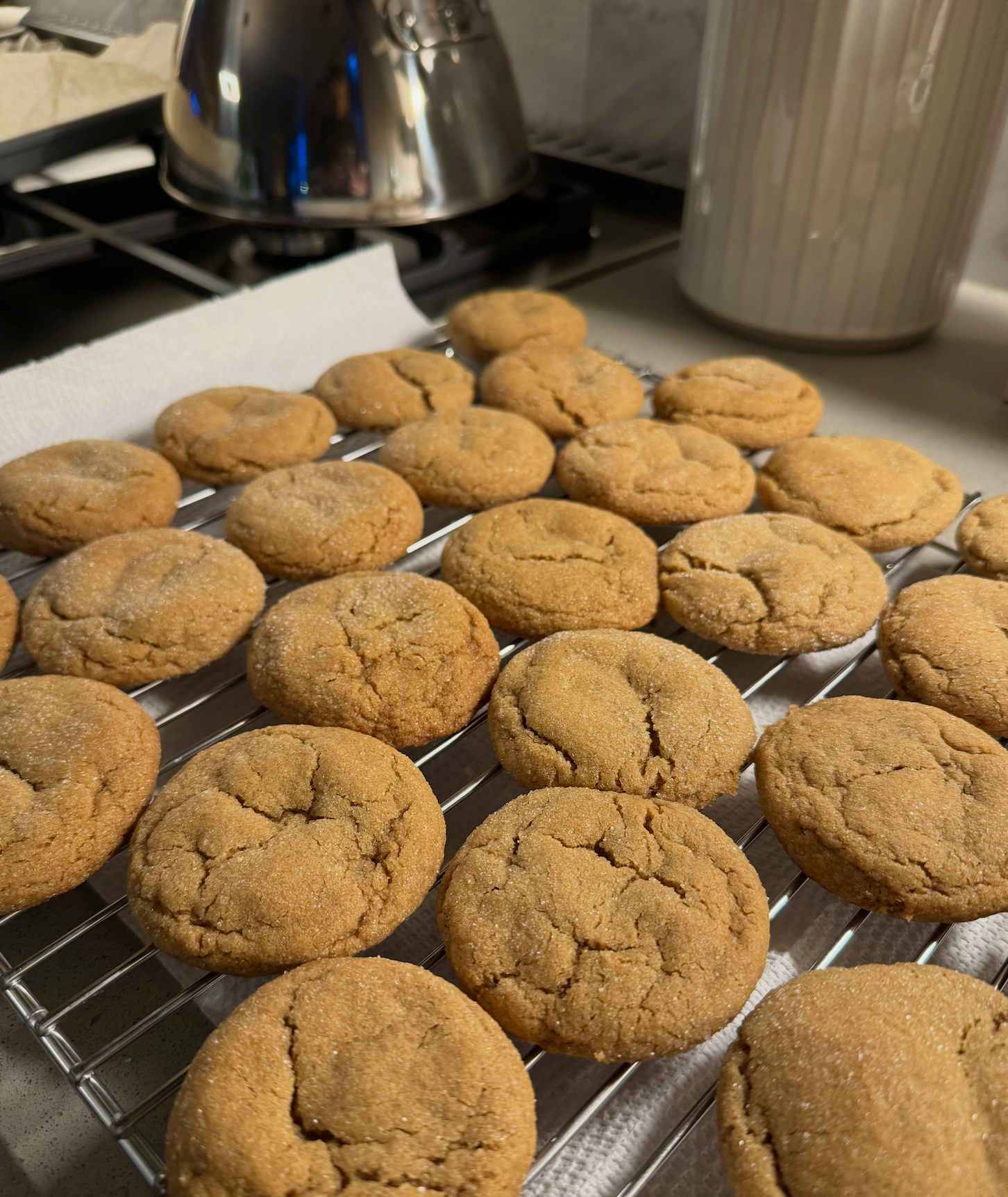 Form or scoop balls of dough that are slightly smaller than a golf ball. Roll dough balls in granulated sugar after forming. Place them on a baking sheet lined with parchment paper approximately 2” to 3” apart to allow room for cookies to spread.